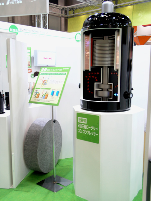 三洋電機では地球環境に優しい世界初の「CO2ロータリ2段圧縮コンプレッサ」搭載のエコキュートを大々的に展示しておりました。