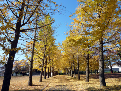 イチョウの黄色は、スコーンと抜けるような青空にこそ映えますね。