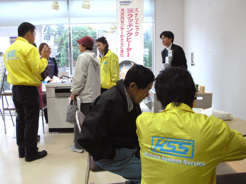 主婦の皆様は会場に入るとまずIHクッキングヒーターのコーナーに惹きつけられる傾向にあります。