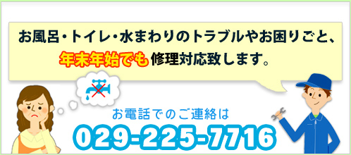 この寒い時期、ましてやご家族やご親戚がお集まりになる機会が増えるこの時期に、お風呂やトイレ、水回りが故障してしまうと大変ですよね。