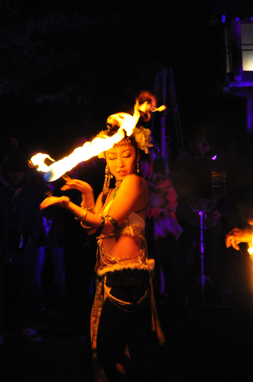 花見でボノボでは恒例のファイアーダンスのパフォーマンスです。