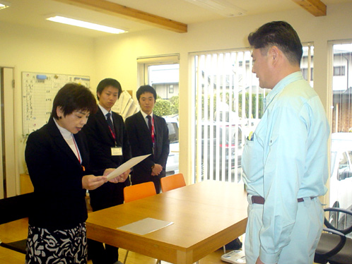 寒い中わざわざ東京電力の方々が、当社の事務所に認定証を届けて下さいました!
