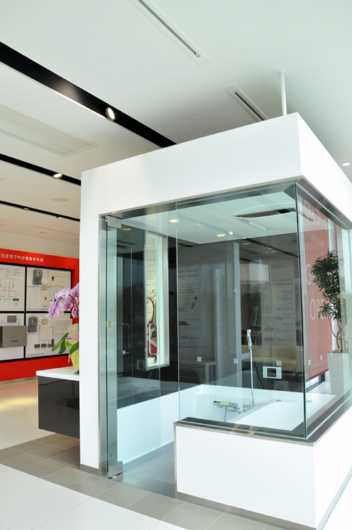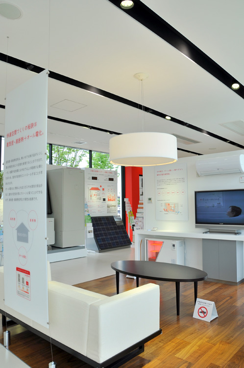 ショールーム内は白を基調にしており、Switch!のイメージカラーのビビッドな赤が随所に効いています。