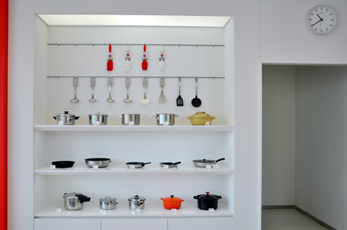 IHクッキングヒーター関連の調理器具もこのように非常にスタイリッシュにディスプレイされています。