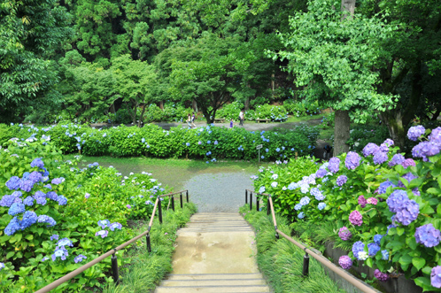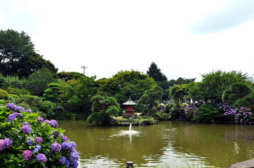 中心には小さいながらも池があります。当然のように周辺には紫陽花が咲き乱れます。