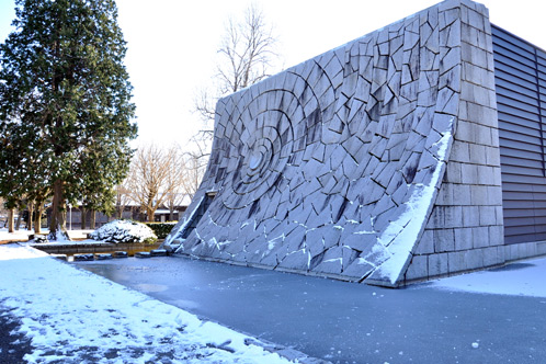 印象的な一橋徳川家記念室の壁面にも雪が残っています。