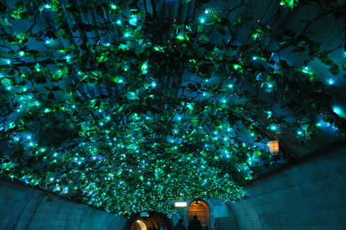 トンネルの天井には幻想的で煌びやかなイルミネーションが施されていますね。