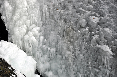 滝は流れ落ちるもの、という固定観念があるためか…凍てついて止まった滝を見るのは不思議な気持ちです。