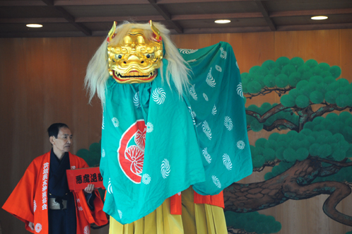 常磐神社の能楽殿の舞台に獅子舞が!?