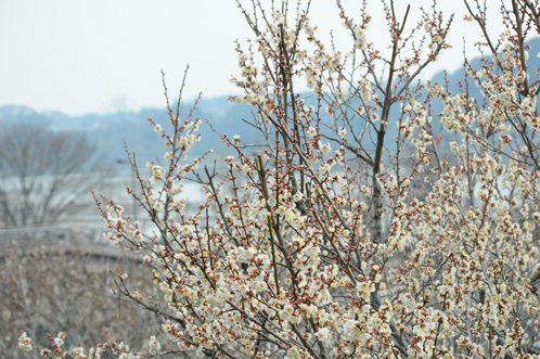千波湖を見下ろすことが出来る陽のよくあたる斜面に植えられた梅の樹は、比較的開花している印象でした。