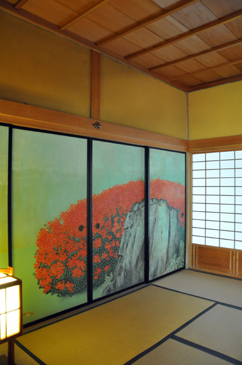 入場すると、菊・桃・躑躅・桜・萩・紅葉・松・竹・梅・清の間、の十室からなる奥御殿を通ります。