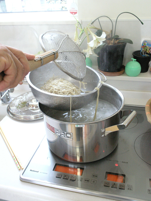 事務所のキッチンのIHクッキングヒーターで茹で上げます!
