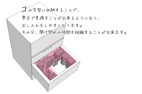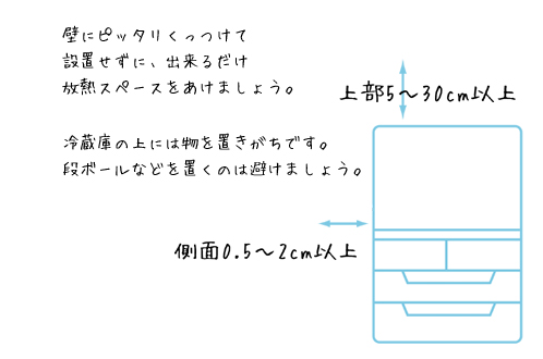 扉の開け閉めの時間は短く、少なく。普段から庫内の整理を心がけましょう