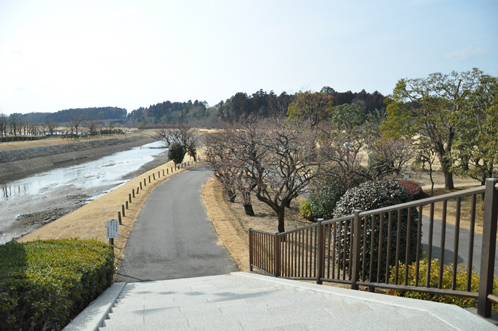 上の写真は、震災後の千波湖周辺の遊歩道のものです。