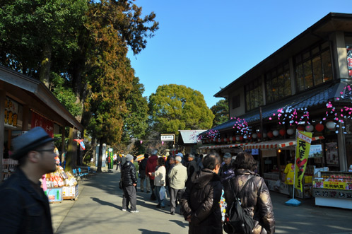 今回の偕楽園散策は、混雑具合を見るために、出店やお土産屋さんが軒を並べる東門から入園しました。
