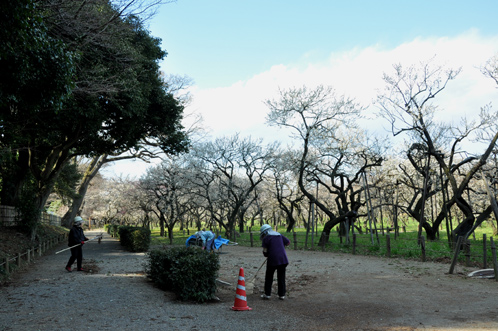 偕楽園の作業員の方々が懸命に清掃をされていました。