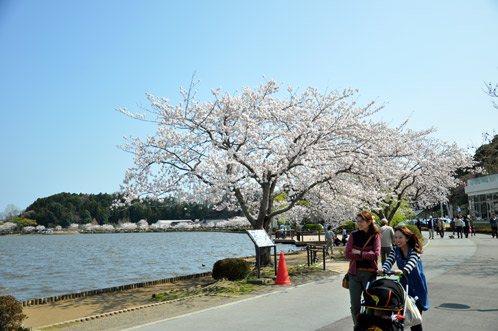 千波湖畔の桜の樹も満開でしたよ。