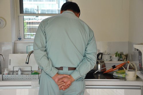 調理法の書かれた紙を見ながら冷凍の餃子を焼いていきます。