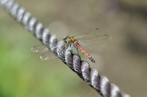 公園の花壇と歩道を区切るロープでは赤トンボが休憩中。