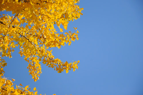 やはり銀杏の葉っぱは、秋の雲ひとつない青空を背景に見上げたいものです。