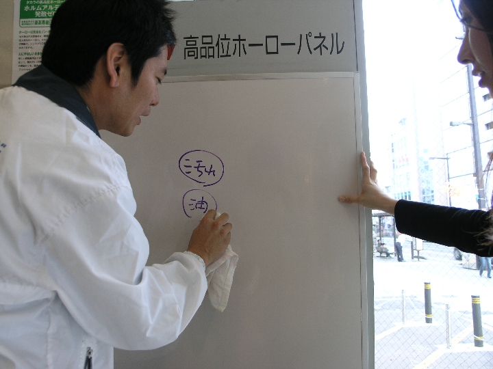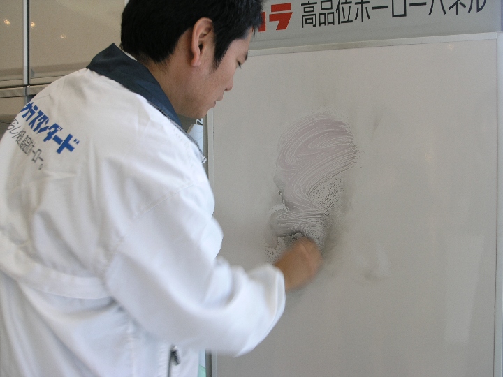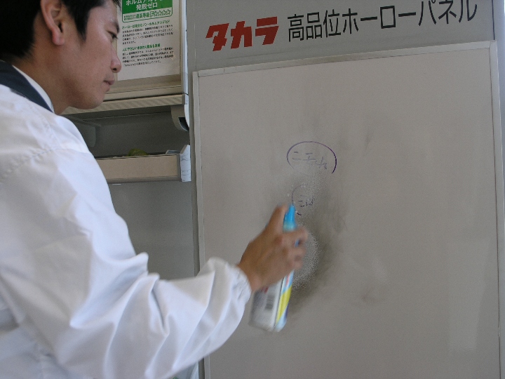 タカラの高品位ホーローなら鉄とガラスの密着度が極めて高く、耐衝撃性にも優れているそうでデモンストレーションとしてトンカチでガンガン叩いてみてもヘッチャラでした。
