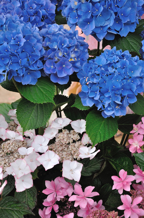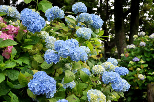 この手毬のような形の"ホンアジサイ"は、先に挙げたガクアジサイがヨーロッパで品種改良されたものです。