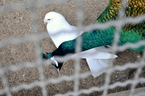 全く不可解な孔雀君の行動に呆気にとられていると、白い鳩が孔雀君と親しげに突っつきあっていました。