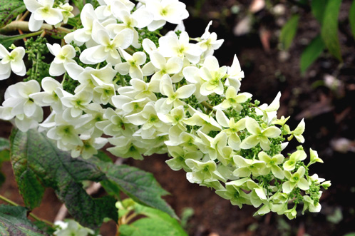 こちらは白い花が円錐状に咲いている"柏葉紫陽花(カシワバアジサイ)"でしょうか?