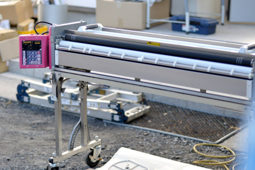 実はコレ、「自動壁紙糊付機」なんです! チョット難しそうなネーミングなので分かリやすく説明し直しますと…「自動で壁紙に糊を付ける機械」です、ハイ。