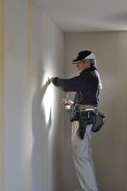 わずかな段差がクロスを貼った後に凸凹となって現れてくることもあるので、クロスをしっかりと貼り付けるには、この下地処理が非常に重要なのだそうです。