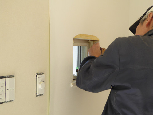 小さな出窓や電灯のスイッチボックスの周りの比較的ややこしい部分も、手際よく作業を進めて頂きまして…