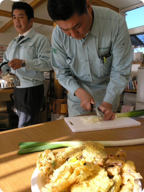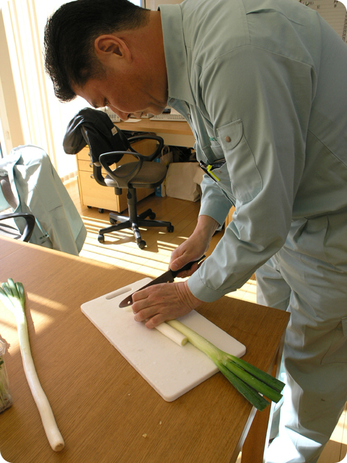 ・・・・・・ 社長、ネギ切ってばっかじゃないですか!!