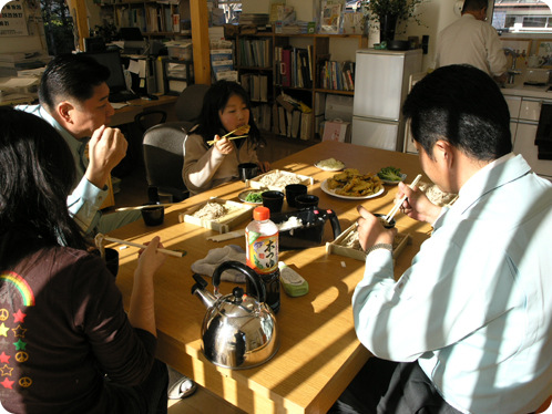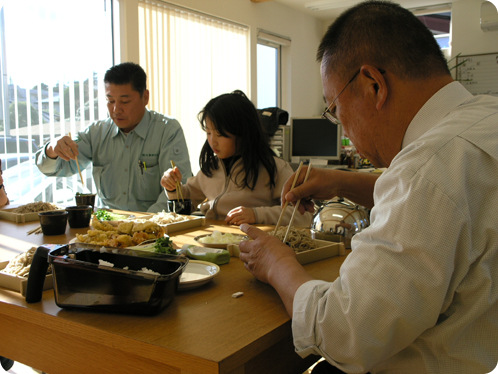 片付け後に訪れた取引先の営業の方にも食べて行ってもらいました。