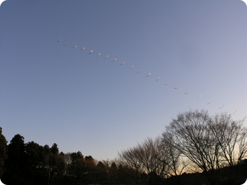 約30枚の凧が各々勝手に風を捉えてグングン上がっていきます。