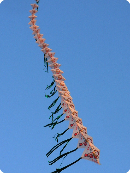 なるほど、連凧はふつうの(シングルの)凧に比べて