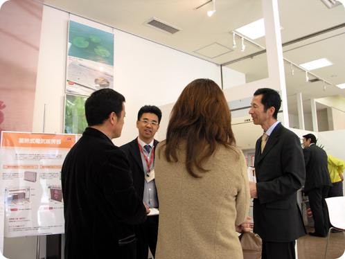 話題の太陽光発電や蓄熱暖房機、蓄熱式床暖房のブースも