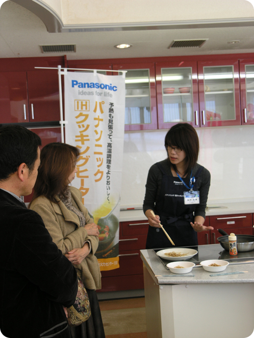 毎回奥様方の関心の的、IHクッキングヒーターの実演・体験ブースは、