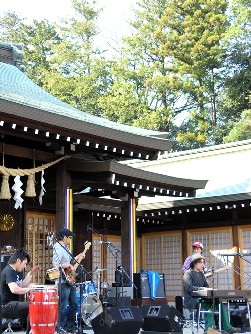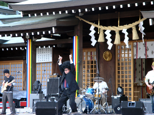 なんと護国神社の拝殿をステージにしてバンドのライブが行われています!