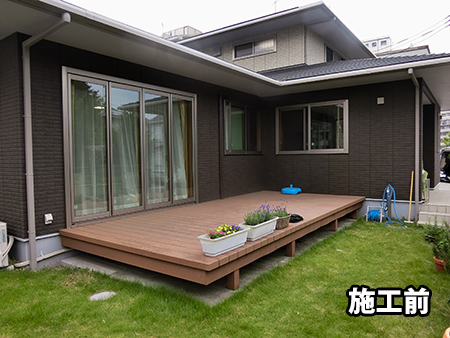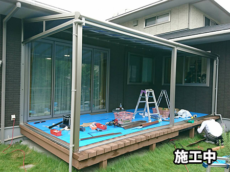 当社の近所にある居宅介護施設のウッドデッキにサンルーム(テラス囲い)を増築する工事です。
