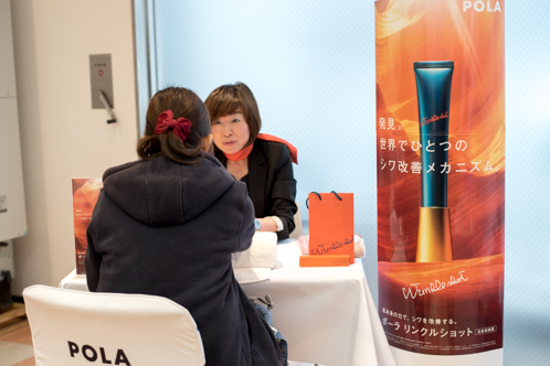 また今回のイベントではPOLA様よりプロのエステティシャンをお招きして、ご来場のお客様に無料でハンドトリートメントマッサージを体験して頂きました。