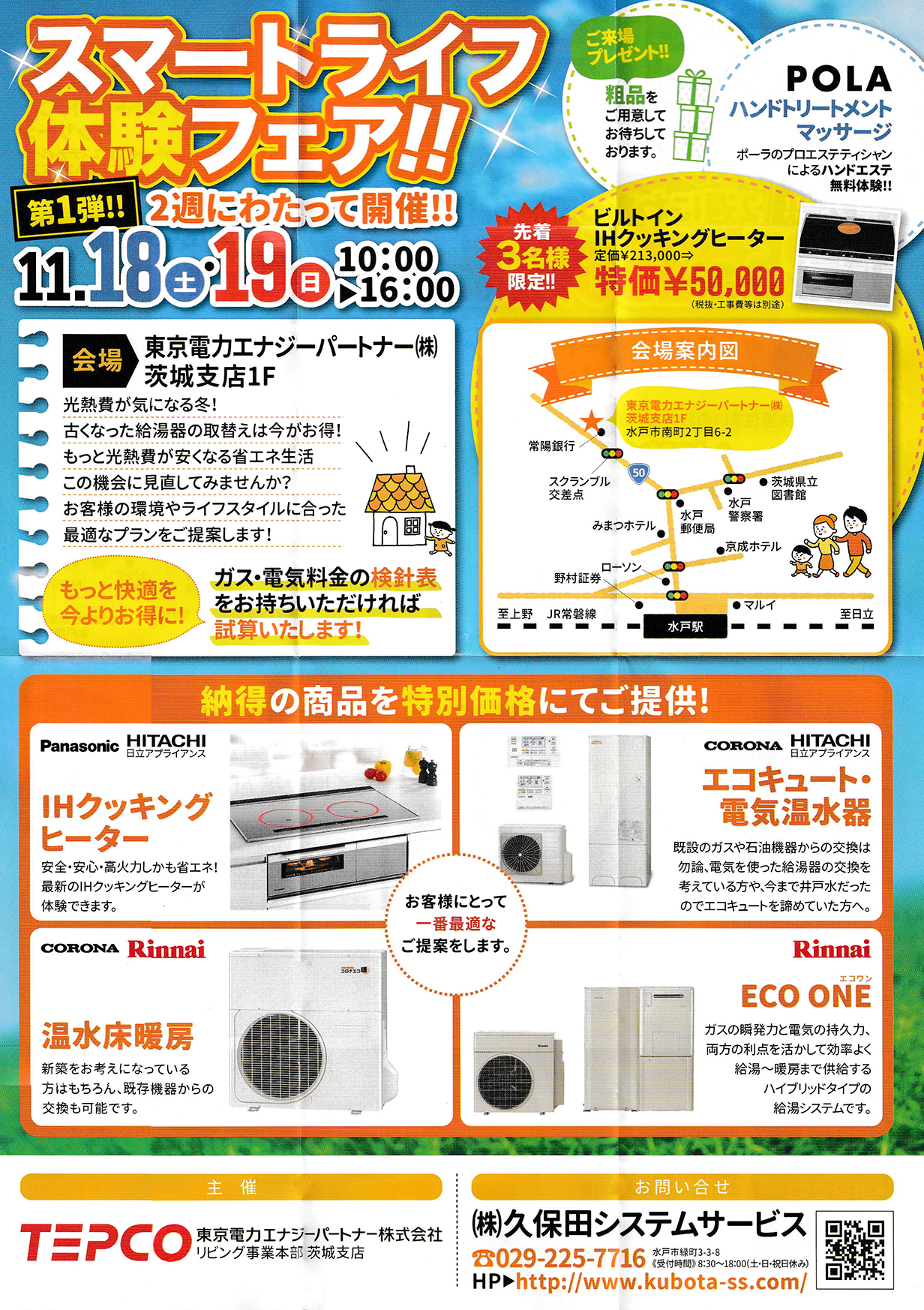 IHクッキングヒーターのデモンストレーションや無料ハンドエステ等、お楽しみも盛り沢山!