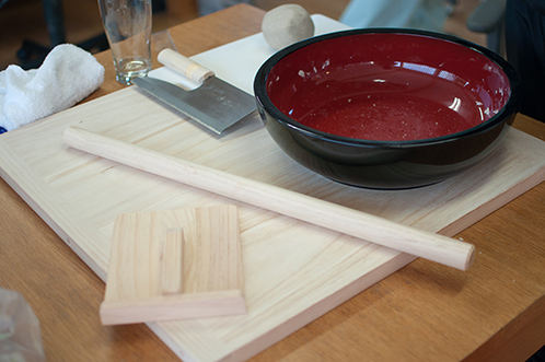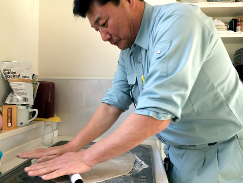 ちなみに机の上に敷いている蕎麦打ち台はO沼さんに発注したモノです。