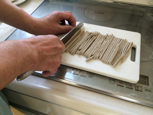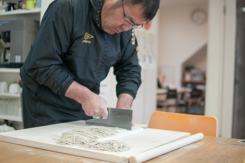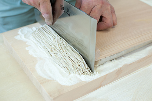 いつの間にか新調された立派なそば切り包丁でストンストンと細く切っていきます。