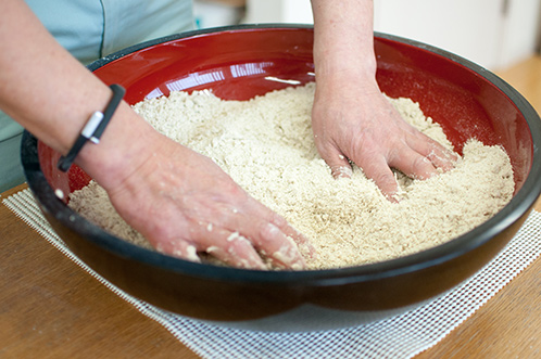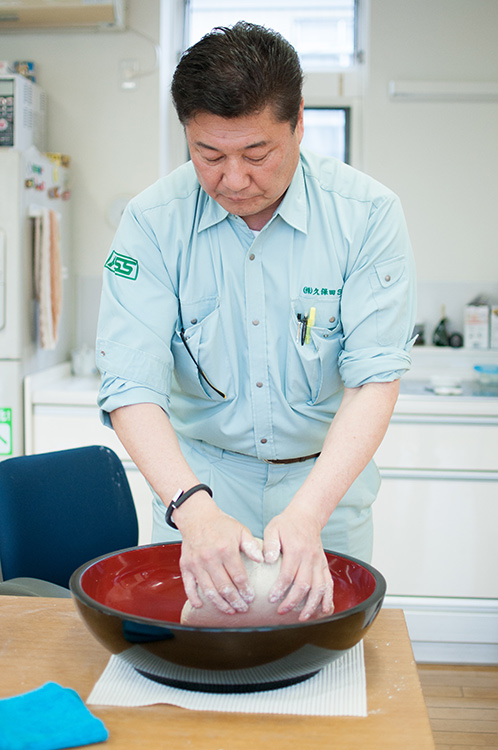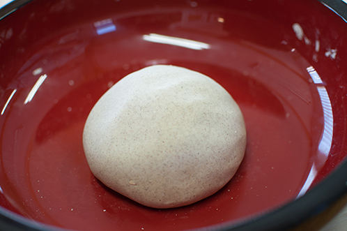 蕎麦の玉から空気を追い出すべく、手前へ折り畳むように捏ね捏ねしていきます。
