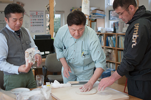 ひたすら(作業着で)捏ねる…。
