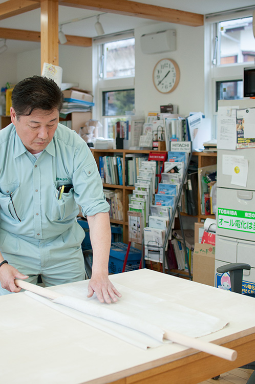 四角に伸ばした生地を丹念に畳んでいきます。