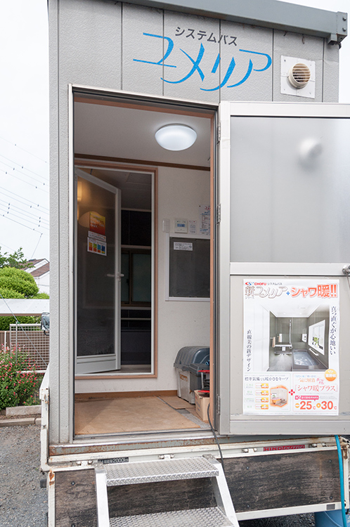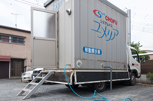 出張してデモンストレーションできるようにトラックの荷台の中身はシステムバスがそっくりそのまま搭載されております。