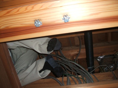 ↑なんの写真かと思いますが、分電盤からIHクッキングヒーターとエアコン用の専用電気配線をしているところです。