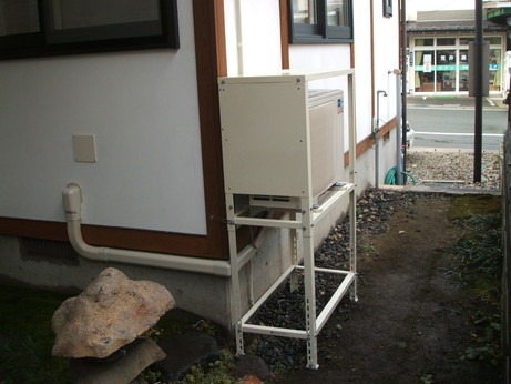 ↑こちらも、降雪を考慮して架台の上に室外機を設置していきます。