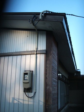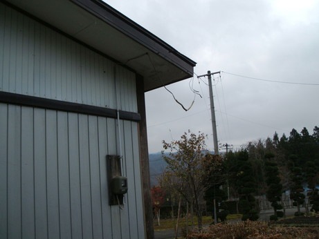 ↑電力メーター回り施工前です。毎年屋根に降り積もる雪の重みで、電線が屋根から垂れ下がってしまっていました。